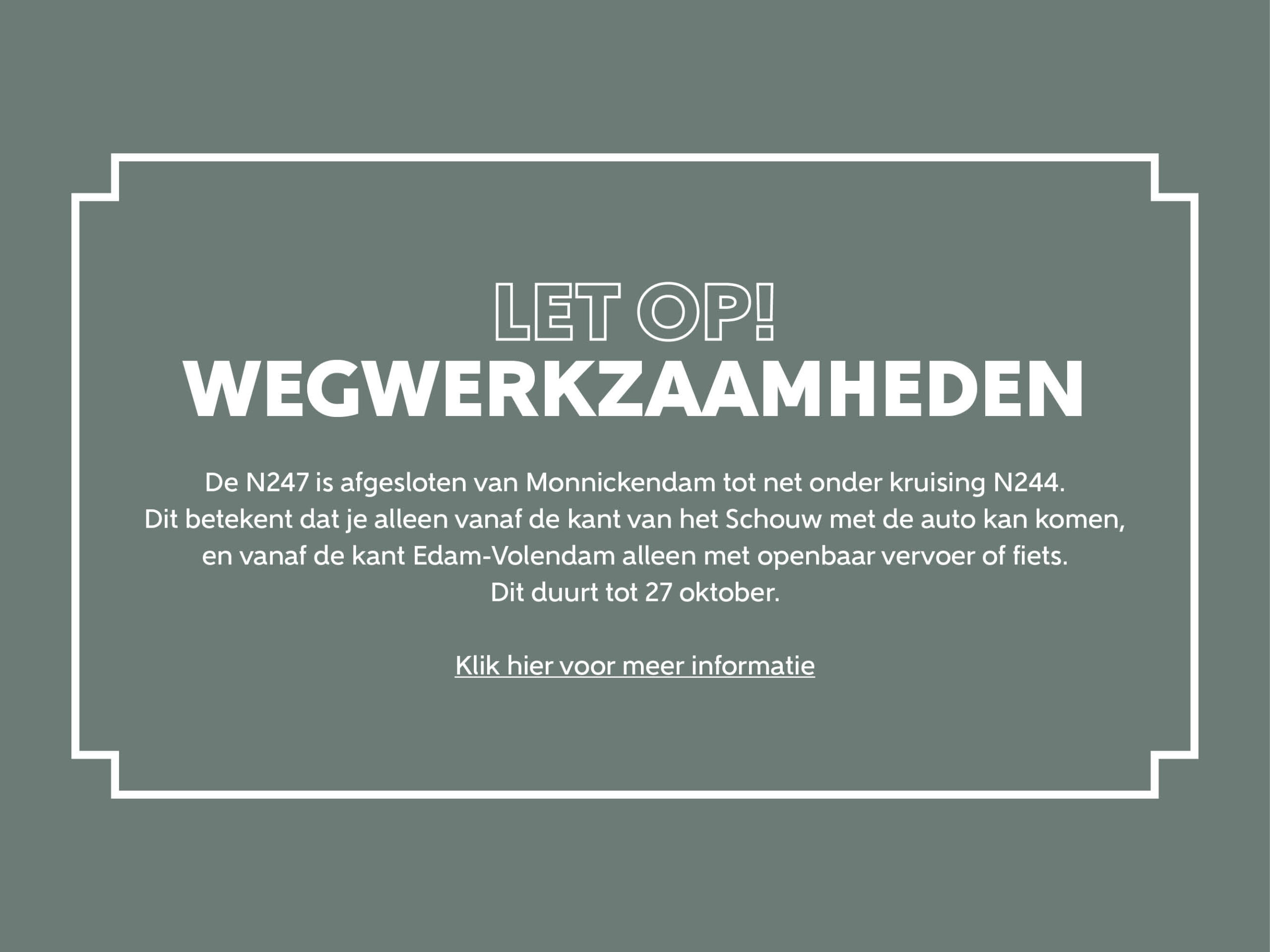 Maak uw reservering via de button rechtsonder op de pagina of bel ons op 0299676457